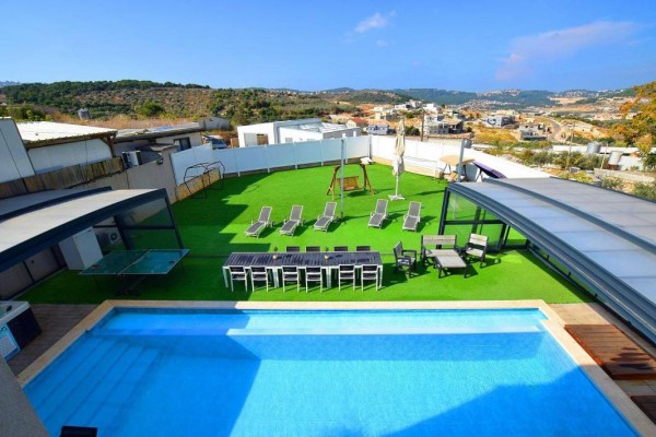 יש *1 וילה* יוקרתית, מקס 20 איש עם 5 חדרים+סלון מטבח וח. אוכל גדולים. יש ממד ושירותים. בוילה 4 שירותים ומקלחות. יש *בריכה מחוממת מקורה בחורף* 5/12מ, עומק עד 2 מטר. מגודרת יש *ג'קוזי ספא חיצוני* אין ג'קוזי פנימי. בתוספת תשלום נ...