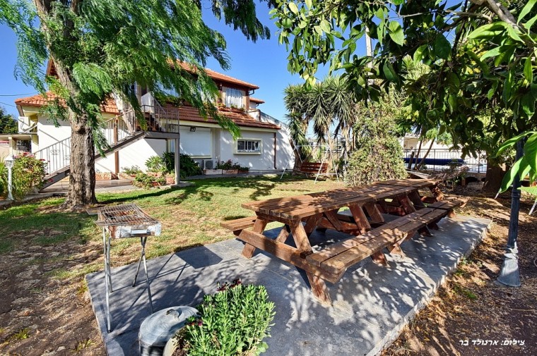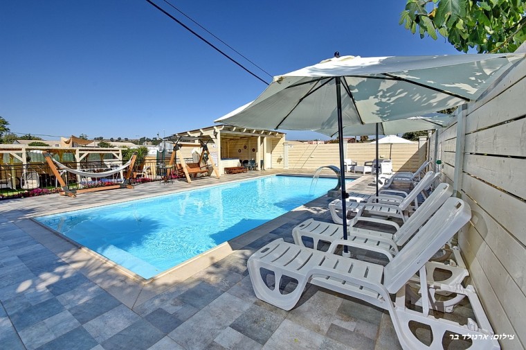 בחצר הירוקה והמטופחת, בריכת שחייה מחוממת 5*11 עומק 1.5 מ', ג'קוזי ספא מפנק מקורה, הליכון כושר,חדר אוכל מקורה , טרמפולינה ענקית, שולחן טניס ("פינגפונג") מקצועי, פינות ישיבה מוצלות, מנגל (לא בשבת), ערסלים, נדנדות, מיטות שיזוף, ריהוט גינה, מדשאות, פינג פונג, כדורגל שולחן טרמפולינה צמחי תבלין ועוד...
