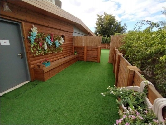 בחצר הגדולה תוכלו להנות ממיטות למשתזפים, שולחן פינג פונג, מדשאה, פינת מנגל, פינה לישיבה בחצר.